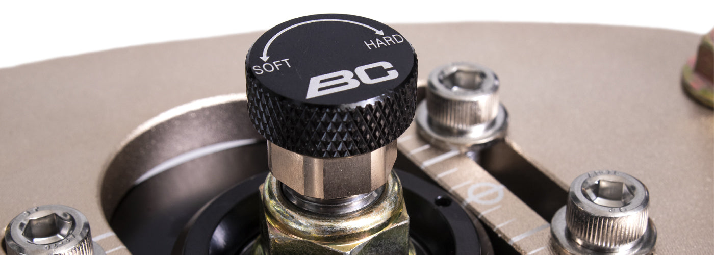 The lower spring platform of the BC Racing coilovers are adjustable. This allows the car to be set up for corner weighting to achieve perfect balance and ensures that maximum tyre efficiency is achieved.