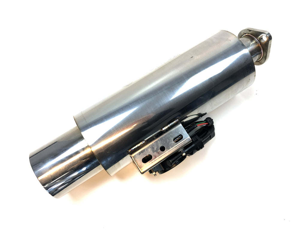 Our mufflers combine both the design technology of the stock muffler and the performance muffler into one single compact unit. A sophisticated butterfly valve mechanism is implemented to redirect the exhaust gas flow and vary be-tween the two. For higher sound level, the exhaust flows are directed through the opening path and produces maximum power with a robust sound level (or the sports car note) and near-zero resistance.